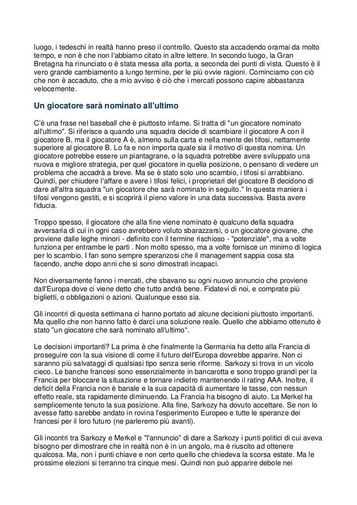 La lettera dell'allenatore di calcio alla mamma di un ... - Sport Fanpage La lettera dell'allenatore di calcio alla mamma di un bimbo "scarso" La madre ritira il figlio dagli allenamenti perché lo ritiene poco adatto al calcetto, il mister le scrive pubblicamente: "Lo... Bellissima riflessione di un allenatore di una scuola calcio! Antonello SABA "Sono ormai tre anni che trascorro il mio tempo libero in mezzo ai bambini che giocano a calcio. C'è chi gioca, chi ci prova, chi semplicemente sta nel campo aspettando che la palla passi dalle sue parti per tirare un calcio e dare un senso al suo allenamento. LETTERA D'AMORE PER IL CALCIO DILETTANTE - tuttocampo Respiriamo calcio. Da bambino i primi calci in piazza. Da ragazzo la camera da letto piena di poster, come fossero lì appesi per darti la buonanotte. I gomiti sbucciati in oratorio, pure lì ci andavi per vincere. Mastichi calcio. Quando hai la palla attaccata al piede ti senti il padrone di tutto. È bello innamorarsene. Lettera di saluto di mister Cozza - Reggina 1914 Lettera di saluto di mister Cozza. 5 Luglio 2016. ... La vita di un allenatore di calcio comporta questi cambiamenti. Ciò che non muta e non muterà mai sarà l'amore eterno per la città, per la maglia, per la nostra amata Reggina! ... In bocca al lupo a tutti, forza Reggina! Francesco "Ciccio" Cozza . Altre Notizie.
